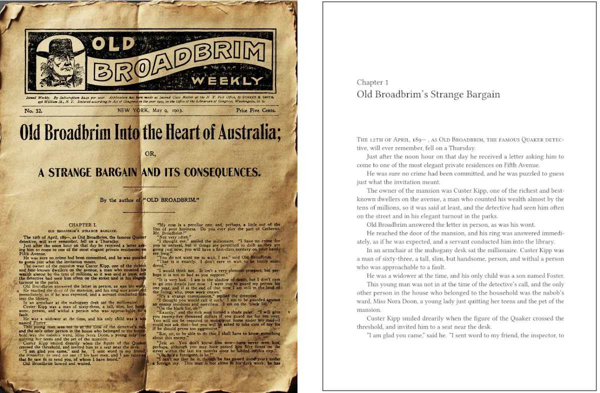 For over a decade, I've been rescuing them. I run a boutique publishing company preserving forgotten fiction—Bradys mysteries, Sax Rohmer, Old Cap Collier, vintage true crime, and much more.